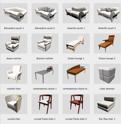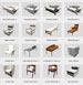 A set of 46 detailed couches, chairs, stools and chaises.